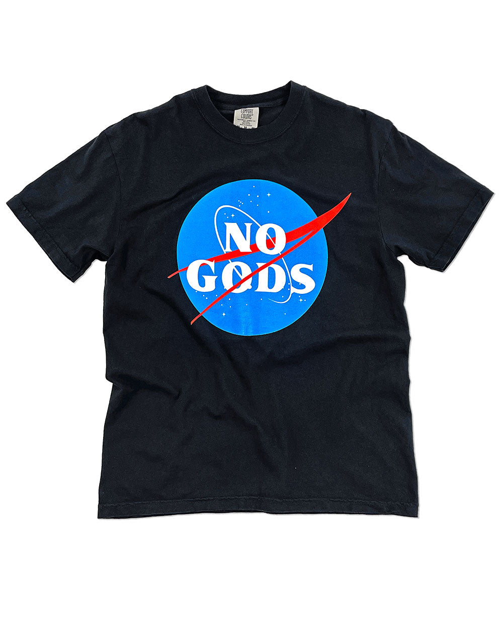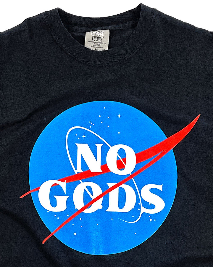 No gods, no masters. A take on the classic NASA logo, looking to our place in the stars for answers and not a deity.