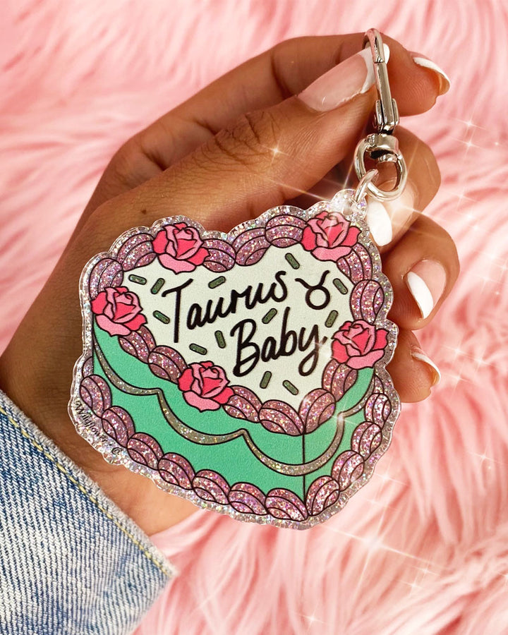 Happy birthday, baby! Celebrate another year around the sun with this playful birthday cake keychain charm. With the D-ring attachment it can be added to keys, but also a fun luggage pull, bag charm, or whatever else you want to clip it to!
