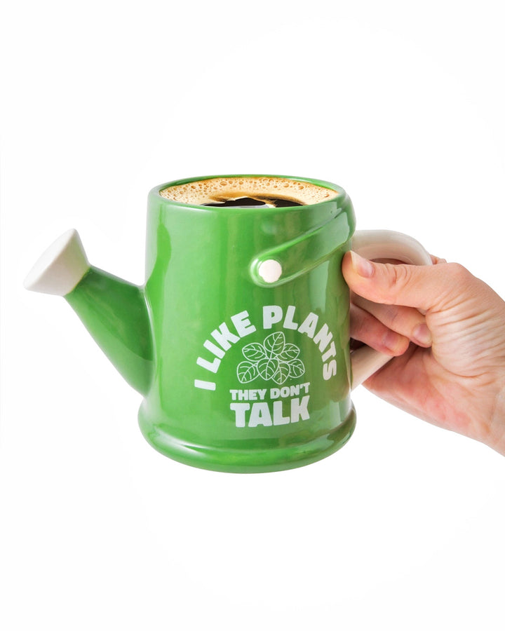 Water yourself with caffeine! Inspired by a classic watering can, this ceramic coffee mug is the perfect gift for plant parents and garden enthusiasts alike. With a hilarious “I like plants, they don’t talk” message, your family and co-workers will know just where you stand on a Monday morning.