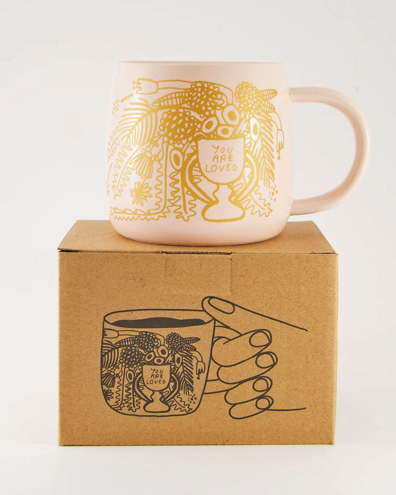 You are loved... like a lot. A sentimental bouquet of flowers in mug form.