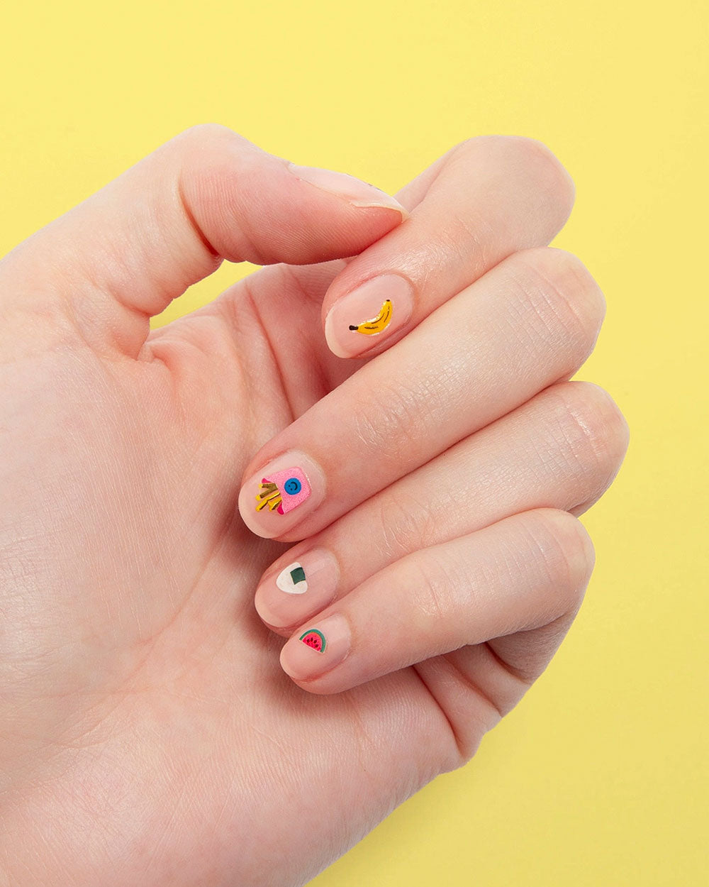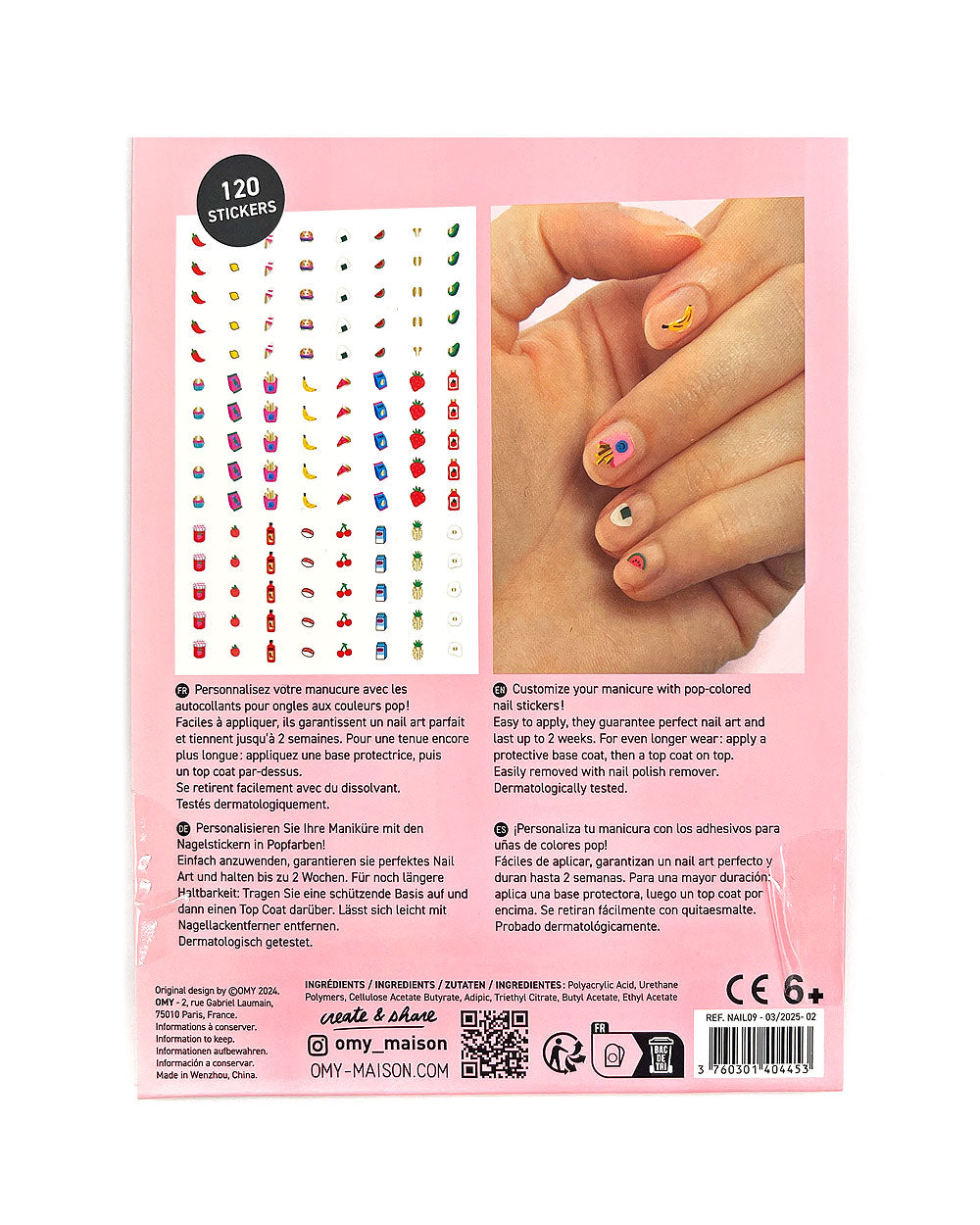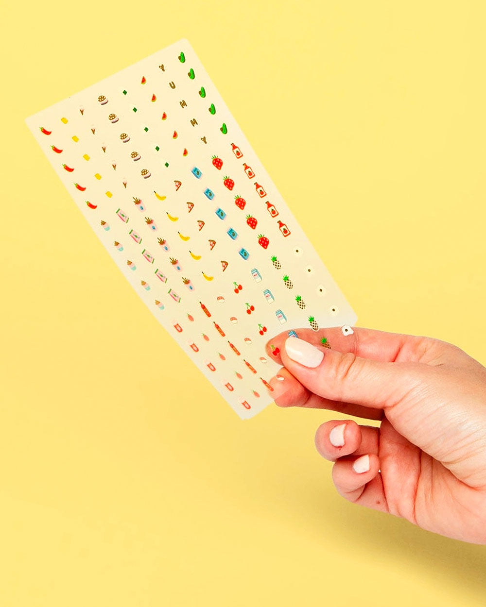 Add something yummy to your manicure! Fruits, condiments, and favorite treats make these nail art stickers fun and delicious.